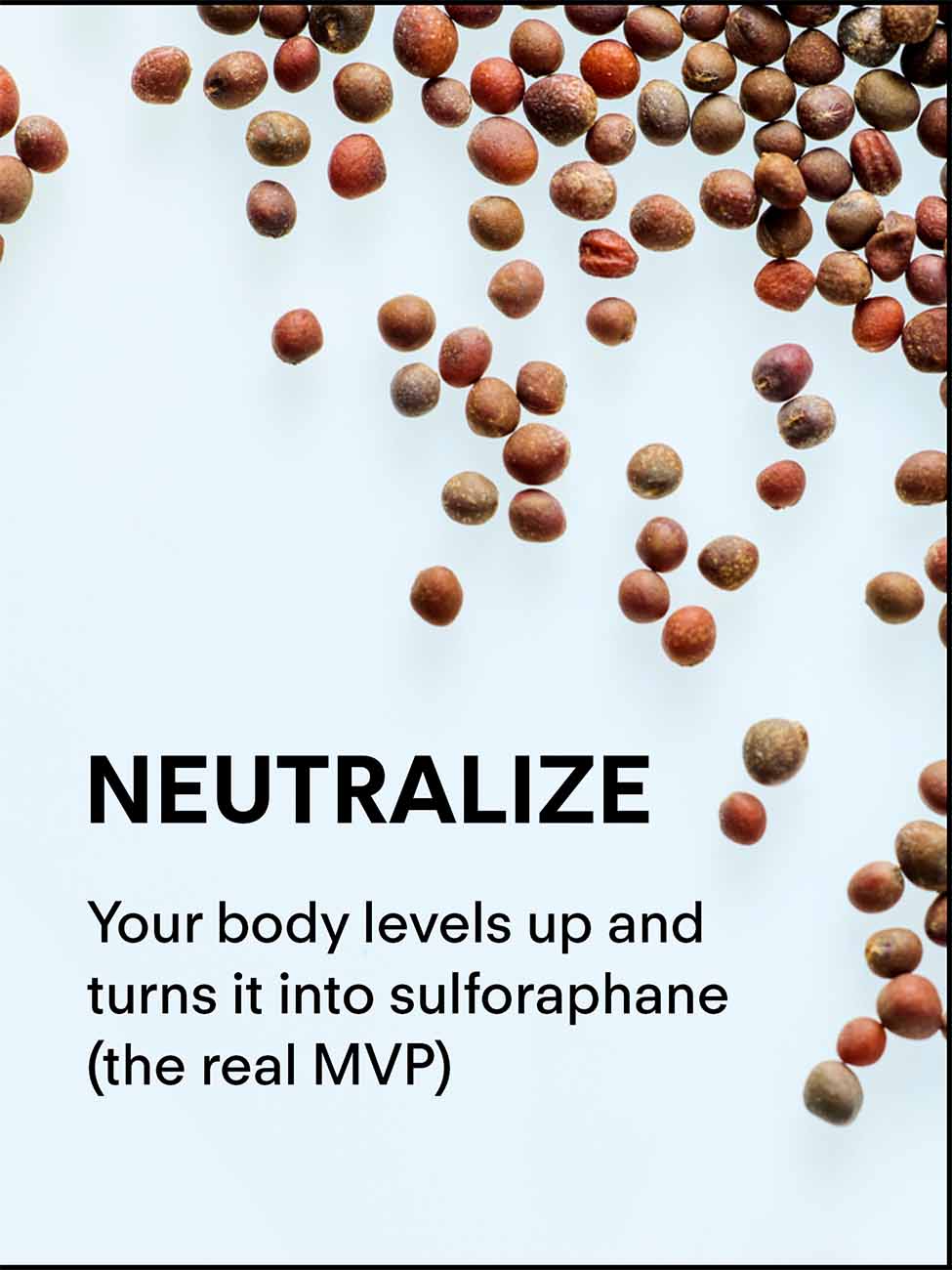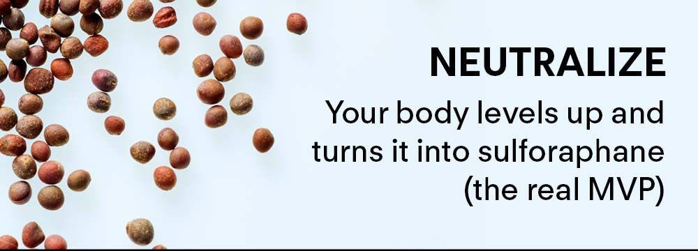 Broccoli seeds are packed with glucoraphanin, which your body converts into sulforaphane. Sulforaphane supports cellular defense pathways (like Nrf2) linked to antioxidant activity and detox support.